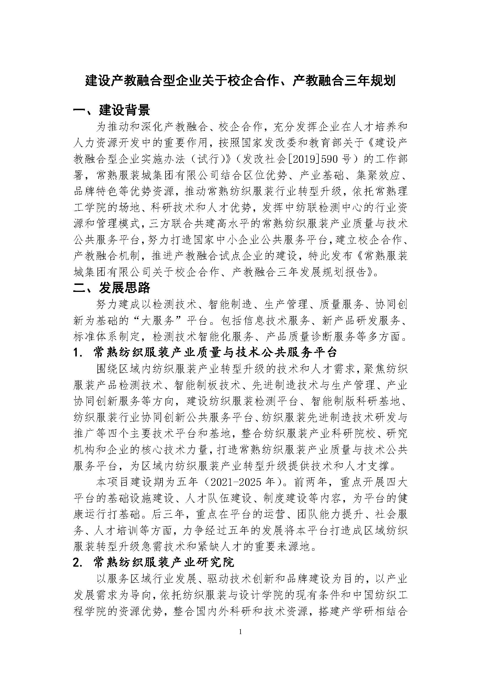 建設產教融合型企業(yè)關于校企合作、產教融合三年發(fā)展規(guī)劃報告